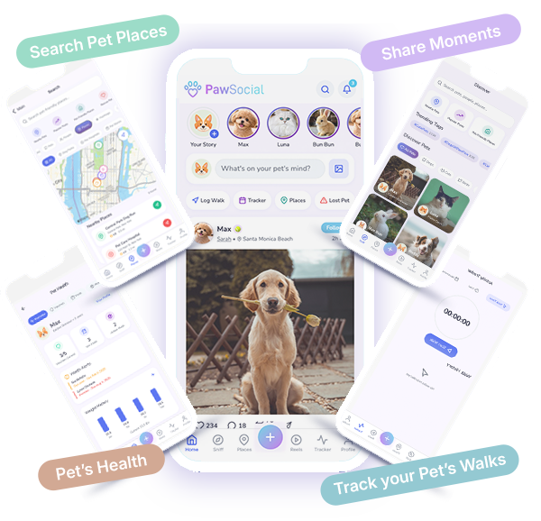 PawSocial is the ultimate app for pet parents — share adorable moments, track health & walks, discover pet-friendly spots, identify breeds with AI, help lost pets find home, and connect with a loving community of fellow animal lovers. Everything your pet deserves, right in your pocket.